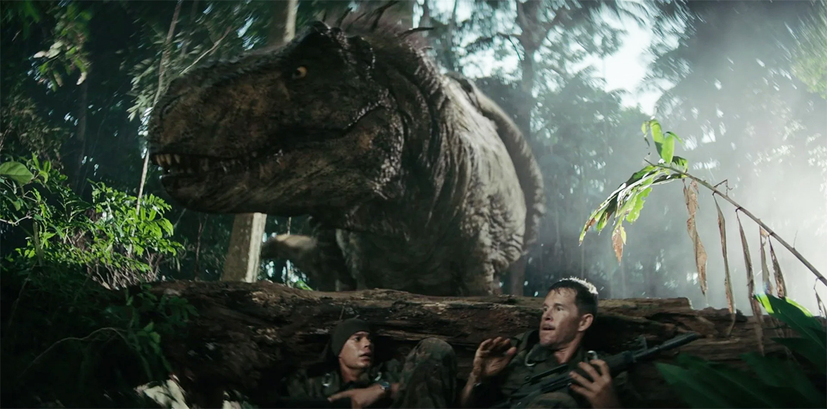 Szkoda tylko, że wraz z porządną realizacją nie idzie dobry scenariusz. Żołnierze biegają po dżungli i ciągle strzelają do polujących na nich dinozaurów. No i z tych potyczek zupełnie nic nie wynika. Magazynki się nigdy nie kończą, mała gady giną setkami, na dużych taka broń nie robi żadnego wrażenia. I przez to szybko zaczyna wiać nudą, a wydaje mi się, że na tych starciach oparto cały film. Co prawda w drugiej połowie dochodzi nieco więcej fabuły, ale jakby ją pisał trzynastolatek na kolanie.